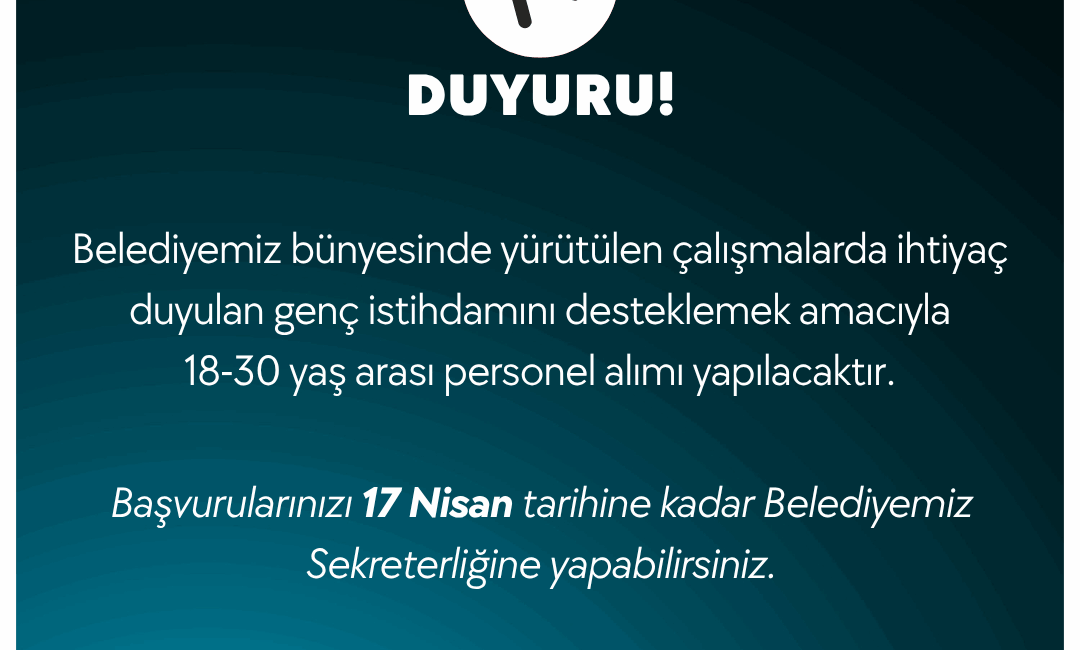Başvurularınızı 17 Nisan tarihine kadar Belediyemiz Sekreterliğine yapabilirsiniz.